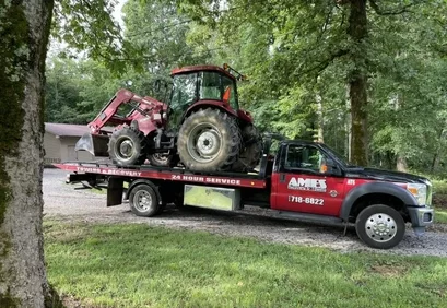 Ames Recovery & Towing has 12-, 20- and 35-ton trailers to transport vehicles and equipment including logging and farm equipment, hay balers, excavators, dozers, skid steer loaders, construction and rental equipment, generators and more.
